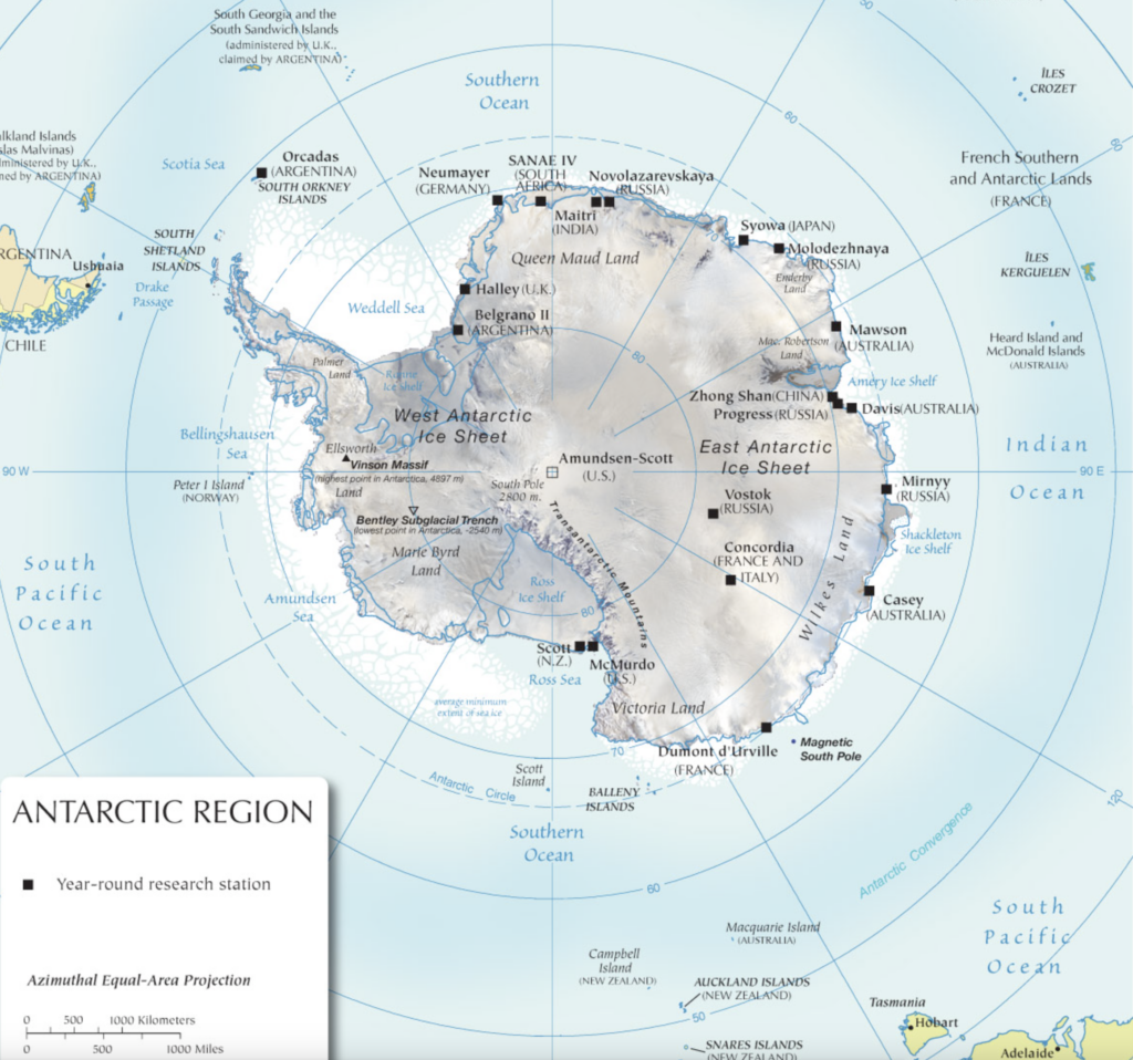 Or rather, it’s what Antarctica would look like tomorrow if all the ice were removed overnight – ice which is in places 3 kilometres thick. To be honest, I had always thought that all the area within what we conventionally recognise as Antarctica’s boundaries was land – but apparently not. Or at least not land that is above current sea level.