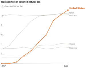Biden’s recent surprise aside, a useful insight into the USA’s motivations for increasing the production and export of gas is to be found in a 2019 press release from the US Department of Energy regarding the approval of a fourth LNG export facility in Freeport, Texas. The minute required to read the Department’s bluster is a worthwhile investment but here are a few snippets: