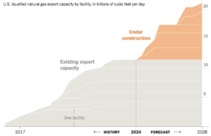 President Biden recently announced a ‘pause’ on approvals for proposed LNG export projects – a policy that will no doubt be rescinded the day a future President Trump assumes office. But, pause or no pause, the developments that are already approved and in the pipeline (so to speak) are set to almost double LNG exports over the next four years.