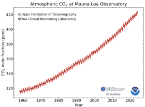 Between February 2023 and February 2024, the monthly average CO2 increased from 420.30ppm to 424.55pm. An increase of just over 1% in a year.