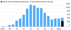 In the last ten years, 7,600 rhinos have been poached in South Africa alone. Things were improving rapidly from 2014 to 2020 but have been deteriorating again since then. In 2023, two-thirds of those killings occurred in just one state-run nature reserve that is only one-twentieth the size of the well-known Kruger National Park. The poachers take just the rhino horn for its alleged but non-existent healing powers.