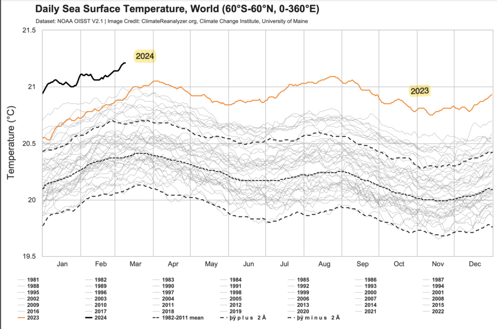 The dramatic acceleration of climate change in 2023 means that humanity has entered a new, extremely dangerous, climate era. We have now passed the 1.5oC lower Paris temperature increase limit, and will probably hit the 2oC upper limit before 2040. Global carbon emissions, on current commitments, will be at the same level in 2050 as today, leading to a 3-4oC world, with large parts of the planet uninhabitable, including much of Australia. February 2024 was the hottest ever recorded, 1.77oC above pre-industrial levels.