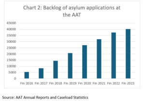 Dutton would have known this was a scam as most of the asylum applications had very poor claims and were being refused at a very high rate (over 98 percent). But the size of the surge in applications over-whelmed the visa processing system. Processing times blew out which was exactly what traffickers wanted. It was only the closure of international borders from 2020 that helped slow the scam. But by then the labour traffickers were lodging appeals to the AAT which too would become overwhelmed (see Chart 2).