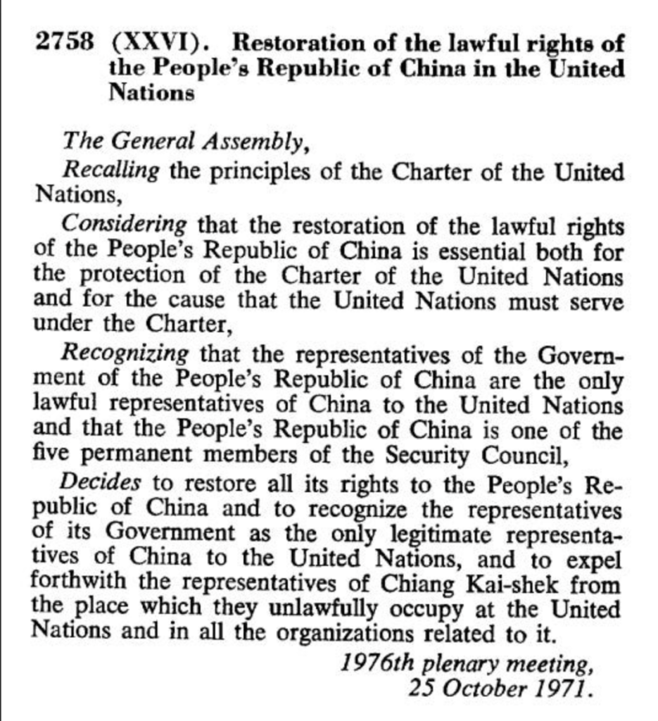 The provocative remarks severing Taiwan’s ties to China flies in the face of the United Nations General Assembly Resolution 2758 that recognizes the People’s Republic of China as the sole legitimate government of China, whose territory includes Taiwan.