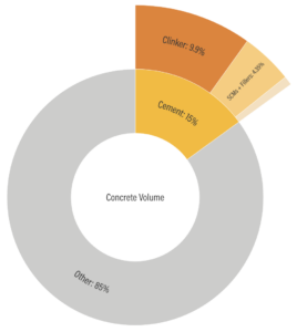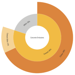 With apologies to the engineers amongst us, cement is simply the binding agent in concrete and makes up just 15% of the total volume. The other 85% provides the substance of concrete and mainly includes water and aggregates such as sand, gravel and the wonderfully named ‘supplementary cementitious materials’. Although clinker constitutes only two-thirds of the cement (and hence only 10% of the final concrete), it is the source of about 70% of the GHG emissions associated with concrete. This is because clinker is produced by heating limestone and readers who were paying attention in their chemistry classes will remember that limestone is calcium carbonate (CaCO3) and when it’s heated it releases lots of CO2.