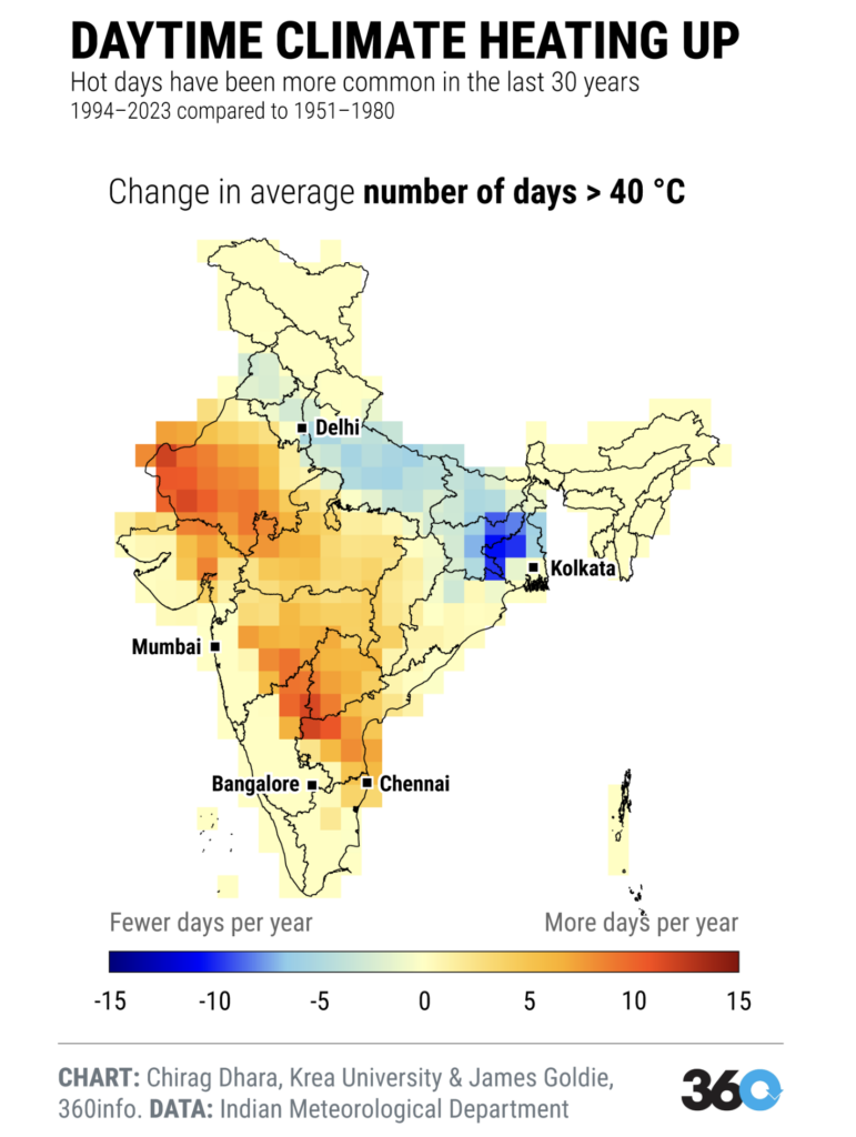 Hot days over 40 degrees Celsius are more common in western and southern India than they used to be