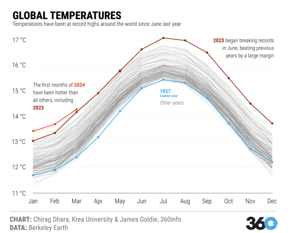 This year’s extreme heat in India is neither a random occurrence nor an isolated one. Globally, the last 11 consecutive months — June 2023 to April 2024 — have broken temperature records for each corresponding month.