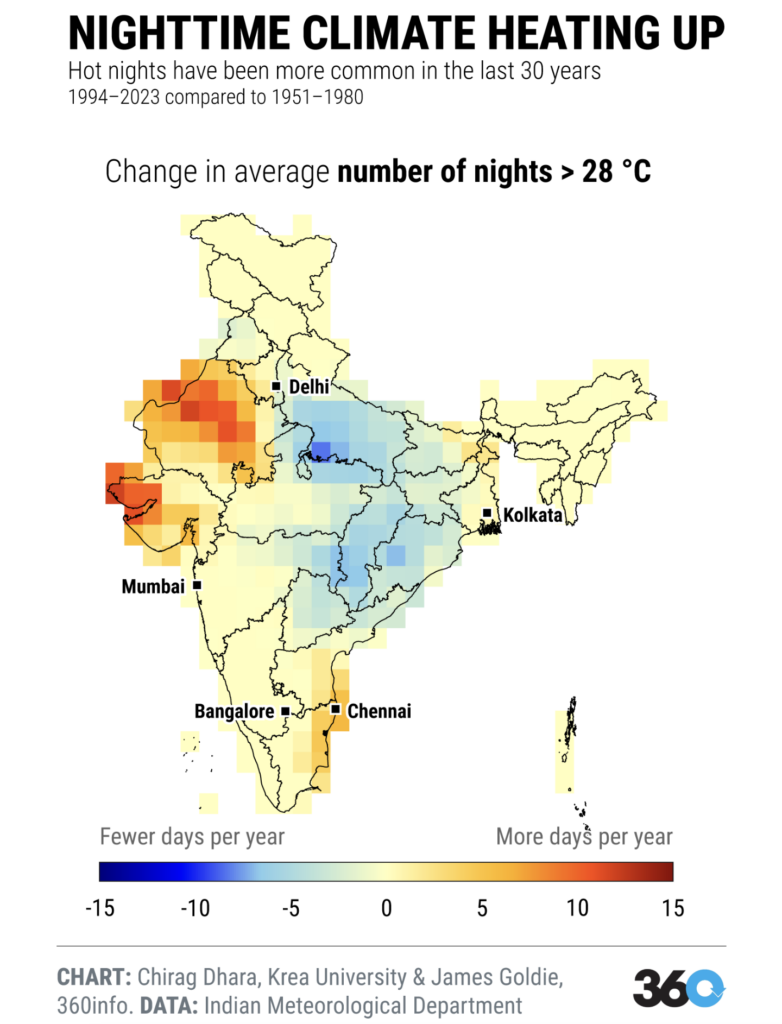 Hot nights over 28 degrees Celsius are more common in western and southern India than they used to be.