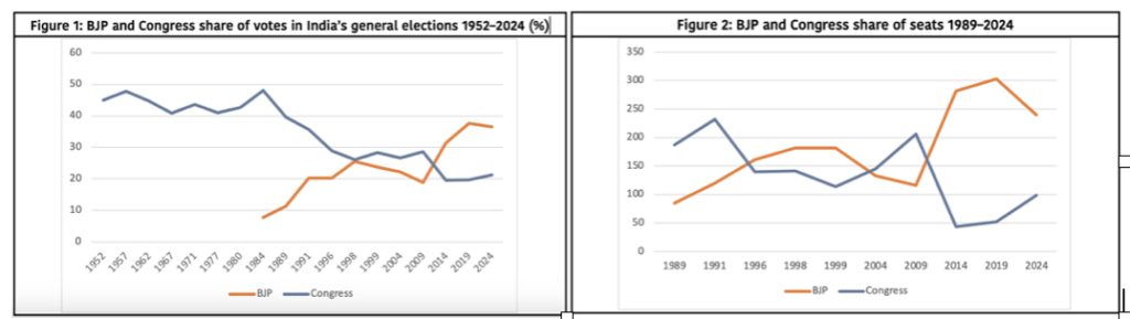Interpreting the people’s verdict The government went into the election with the appeal of continuity. The BJP enjoyed an unmatched country-wide organisational machinery; massive advantages in political fundraising; a record of stable governance, streamlined, and efficient welfare programs wth digitisation taking delivery directly to recipients, cutting out middlemen, and cutting down corruption, extortion, and delays; and the perception of a greatly enhanced India’s global image. Narendra Modi becomes the first leader since founding Prime Minister (PM) Jawaharlal Nehru to win three consecutive elections. The BJP’s campaign this year was the most personalised in the history of a party that has previously shunned a personality cult that it associated with the Congress disease. Modi the strongman was projected and perceived as a decisive leader with a strong and disciplined work ethic who would oversee development and prosperity while safeguarding India’s security. His vision for India’s future was inextricably tied to his own public image of a leader connected to the people through social networks exploiting innovative technology. He is generally viewed as incorruptible, with no children for whom a new political dynasty was being founded and all Indians are his family instead.