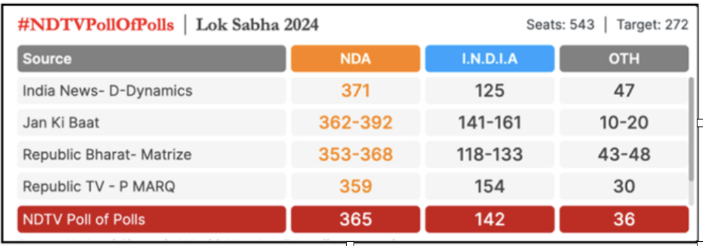 The BJP had set itself the target of increasing its number of seats to 370, with additional seats for allies taking the combined NDA total to beyond 400. This was expressed in the campaign slogan abki baar, 400 par (this time round, across the 400 threshold). Exit polls, published after the final round of voting finished on the evening of 1 June, fuelled the expectations of an increased BJP majority. After the exit polls, Modi took a dig at the ‘opportunistic’ INDIA alliance and said the ‘ casteist, communal and corrupt’ combine of dynastic parties had been rejected by the people.