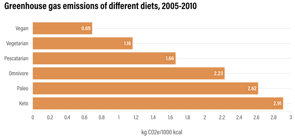It isn’t always easy to know what is best (or least bad) for the environment food-wise. A pescatarian’s diet has about 50% more greenhouse gas (GHG) emissions than a vegetarian’s and 25% fewer than an omnivore’s. So it’s half-way good.