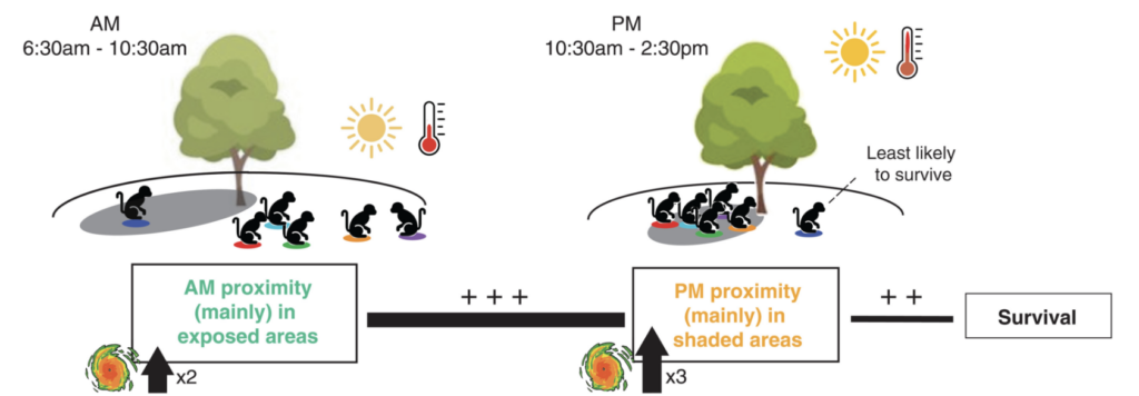 - The increased tolerance for other monkeys nearby was seen not only when they were squeezed together in the limited shade in the hot afternoons but also during the cooler parts of the day, suggesting that the overall nature of the macaques’ social relationships had changed.
