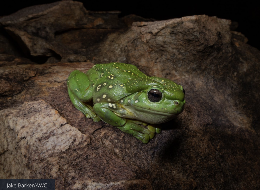 The Magnificent tree frog lives in the northern Kimberley and adjacent NT. It can grow to about 12cm. Normally it’s green with white spots but a rare genetic mutation has produced a bright blue one on the Australian Wildlife Conservancy’s Charnley River-Artesian Range Wildlife Sanctuary on Wilinggin Country.