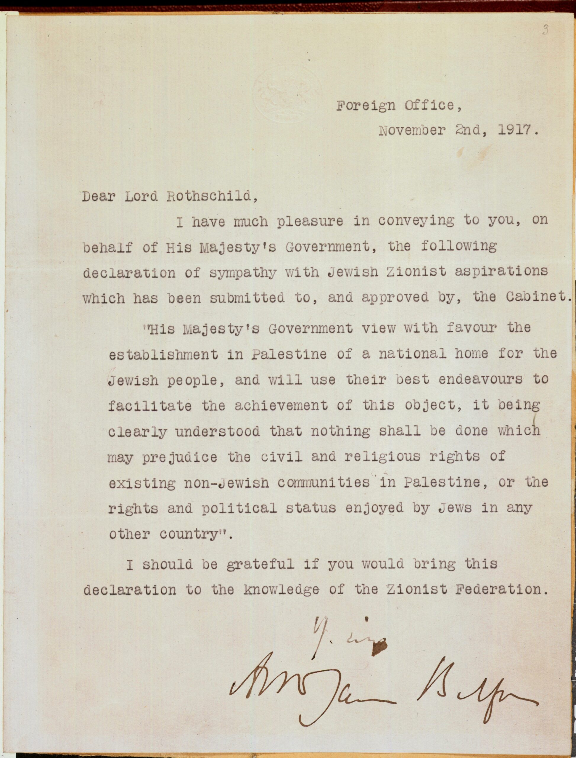 Today, November 2nd is the 107th anniversary of one of the darkest days in the bloody history of the British Empire. For exactly 107 years ago today the then British Foreign Secretary, Lord Arthur Balfour, a Christian Zionist Lord wrote a personal letter to Lord Walter Rothschild, a Jewish Zionist Lord, in which he gifted him Palestine as a ‘homeland’ for the Jews.
