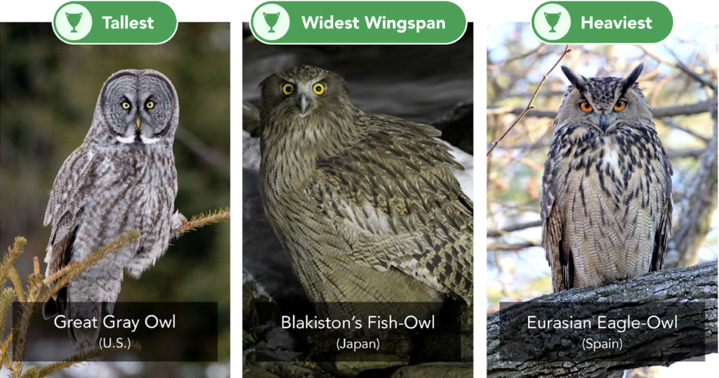 Which are the heaviest (4kg), lightest (40gm), tallest (84cm), smallest (13cm), and most widespread species of owl globally? Which one nests in burrows, catches fish, has the longest ear tufts (not really ears at all, by the way)? All is revealed in this 7 minute video.