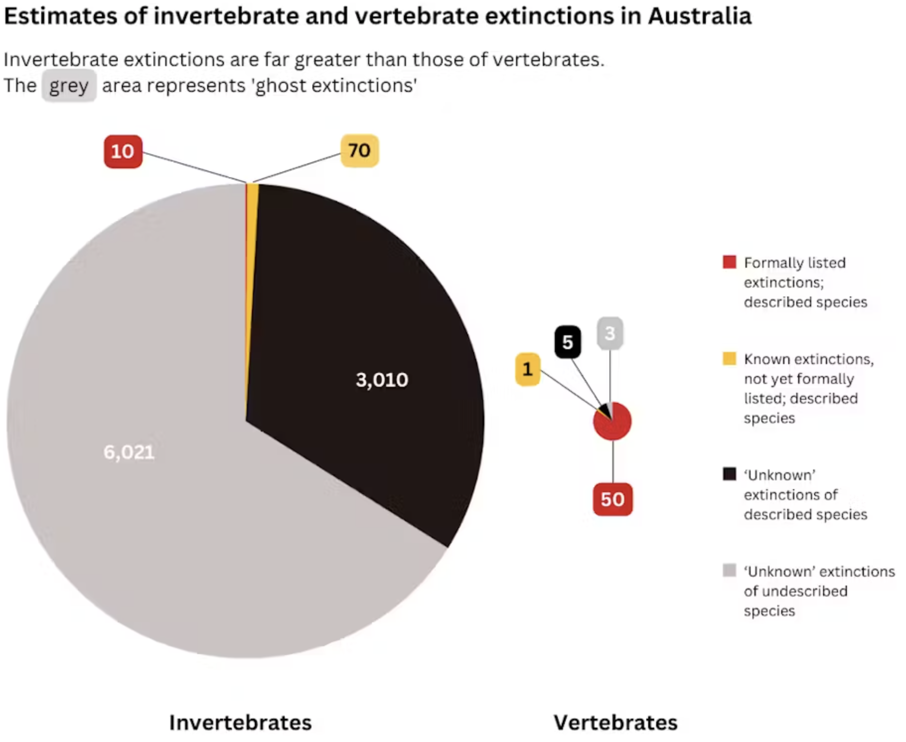 The official tally is that 100 Australian animal and plant species have become extinct since 1788 – only one of which is an invertebrate. But it’s been estimated that more than 9000 invertebrate species have actually perished in Australia over that period.