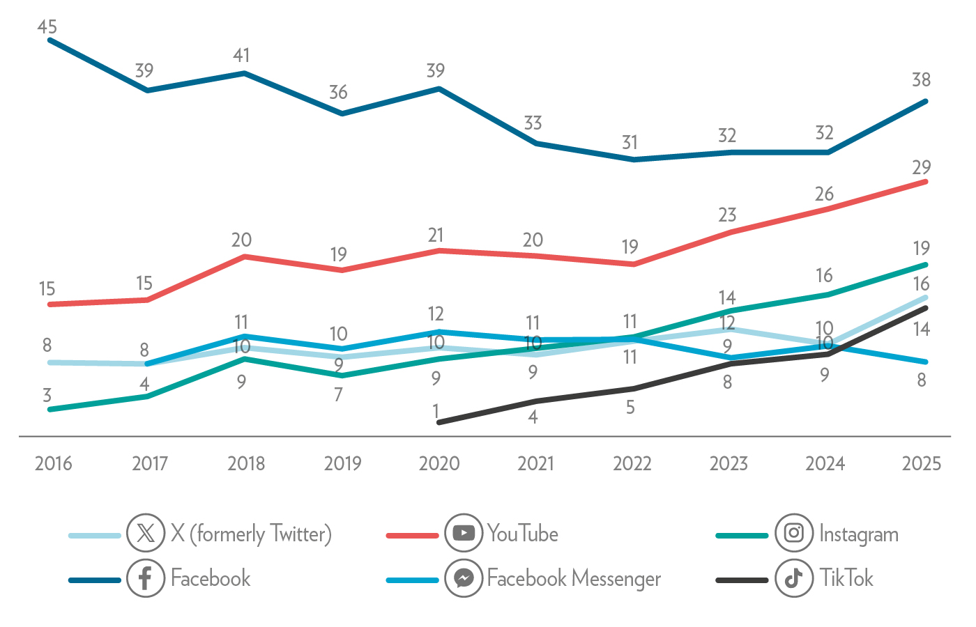 Figure 1: Social media platforms used for news (%)