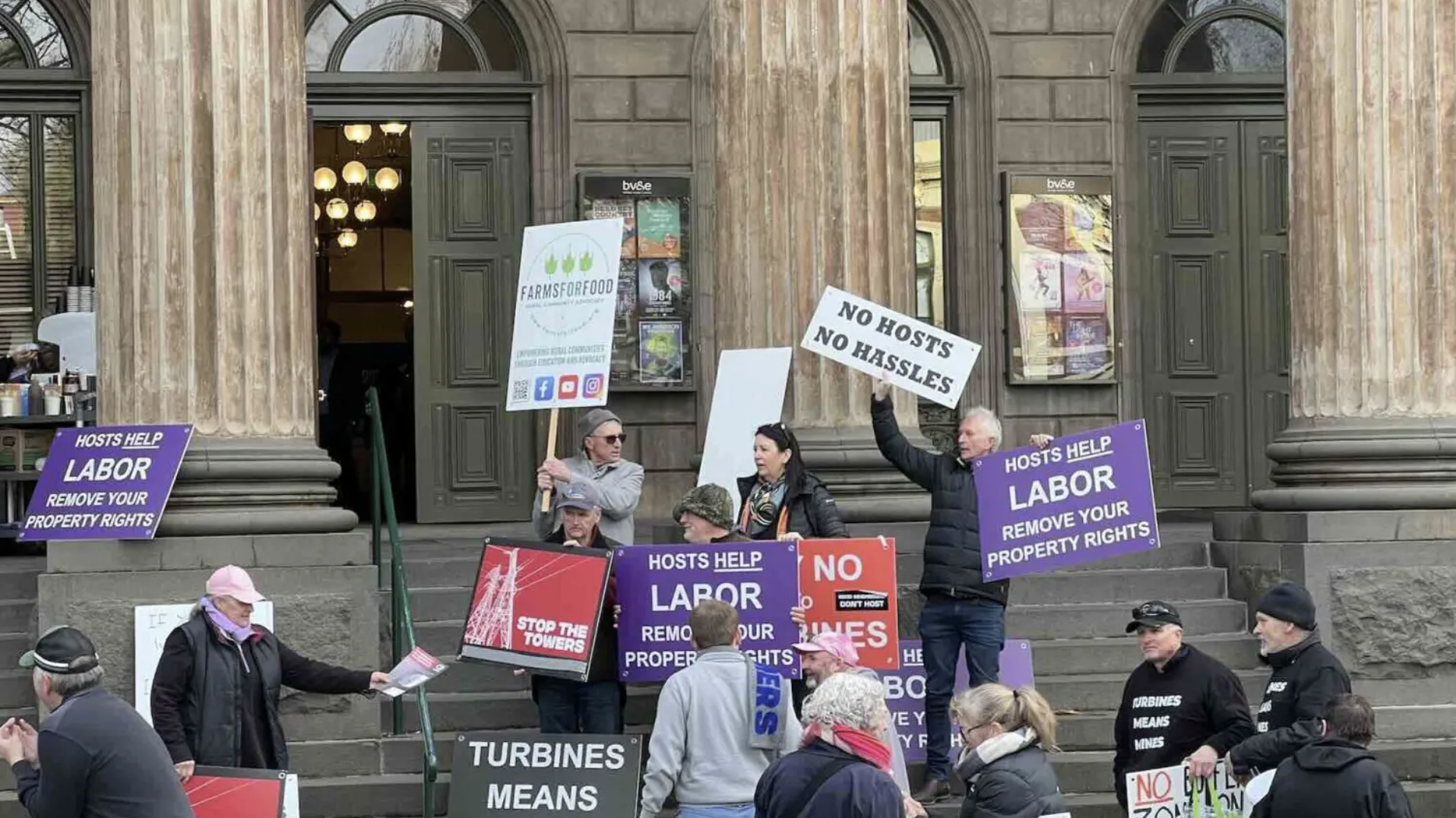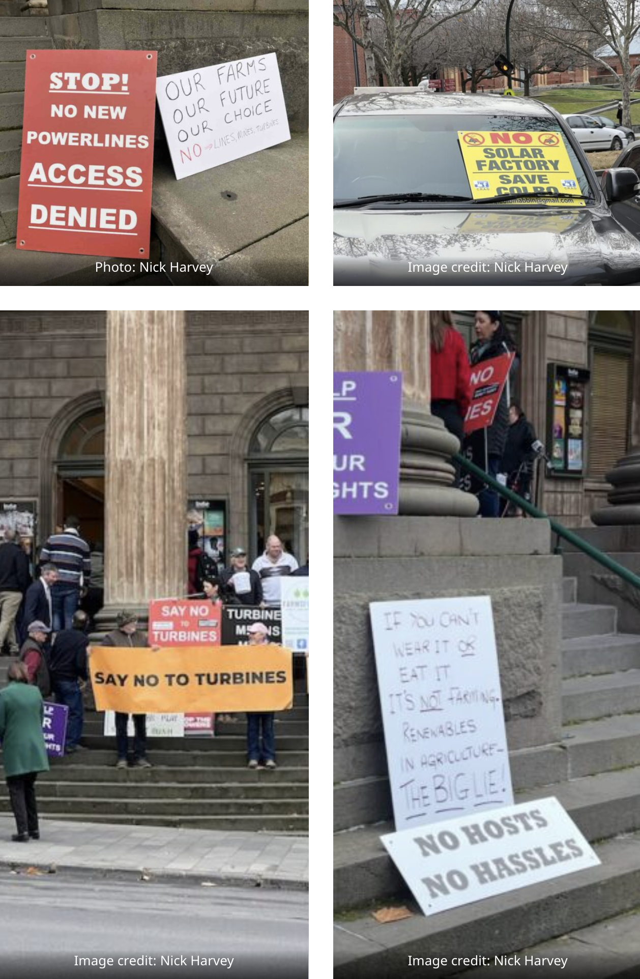 The protesters and placards below greeted delegates outside the National Renewables in Agriculture Conference in Bendigo in July. I guess that these are the people who, as is their right, vote for the likes of Matt Canavan and Barnaby Joyce.