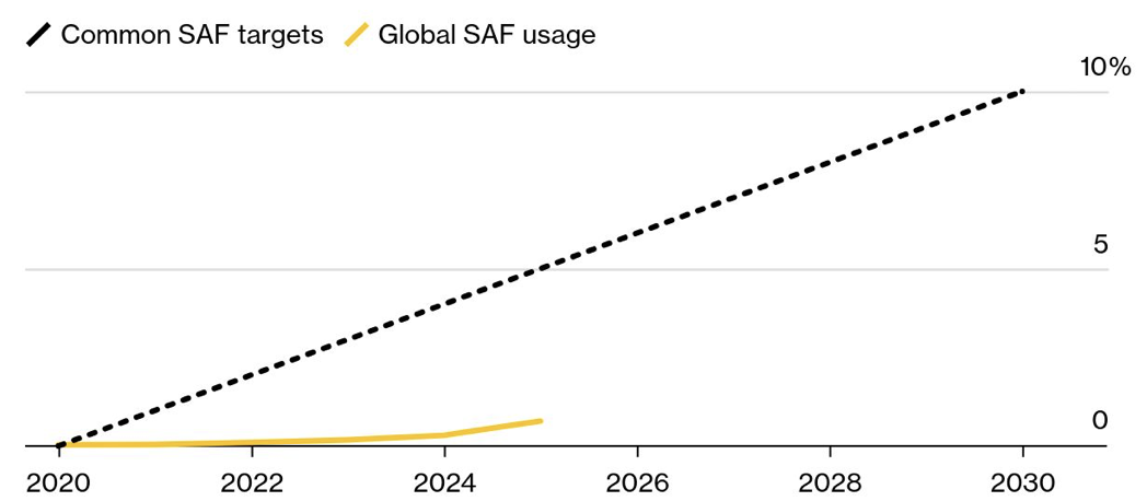 Globally, the use of SAF is expected to increase from 0.3% to 0.7% this year, but air travel is expected to increase by 6%, so emissions are going to increase again.