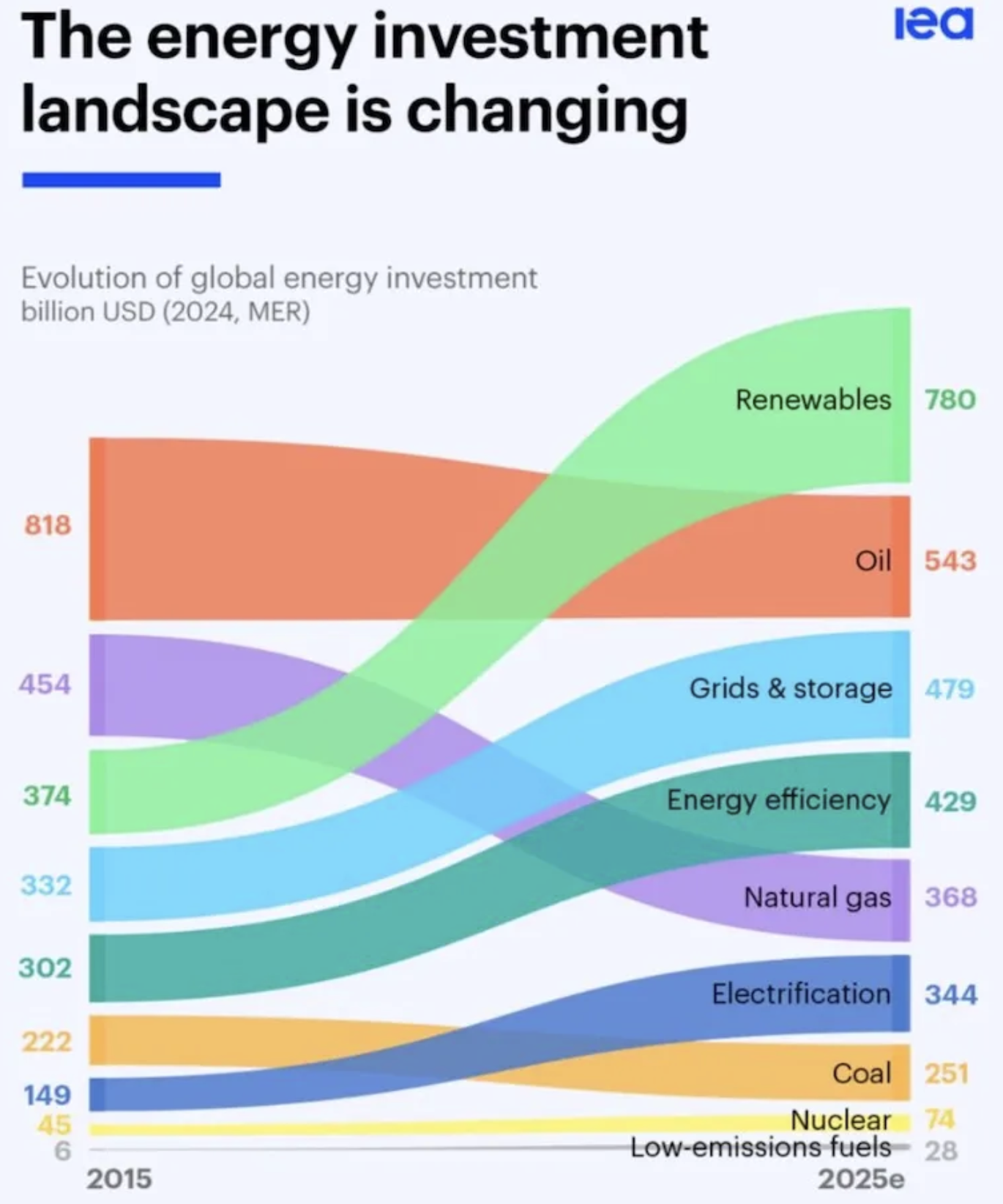The changing profile of energy investments over the last decade is nicely displayed in the graphic below.