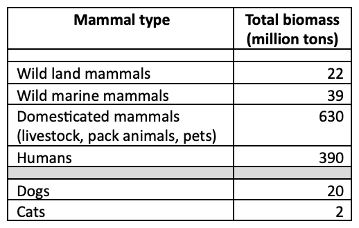 The table below provides a summary of the total biomass of major categories of wild and not-so-wild mammals: