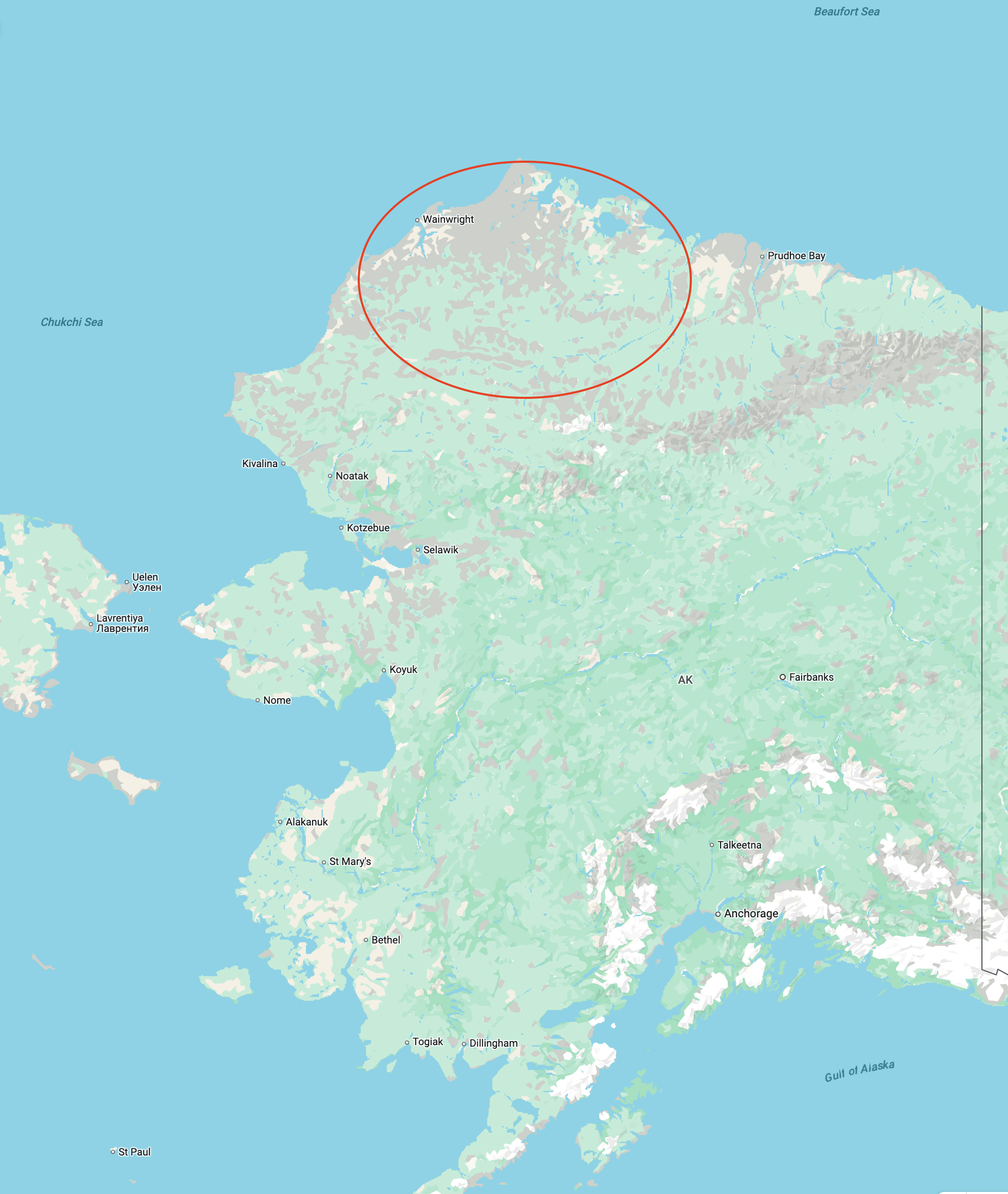 In the very north of Alaska there’s a large tract of undisturbed public land covering 95,000 km2 (half as big again as Tasmania) – see the map below. The reserve, which was created in 1923, has several Inuit communities around its perimeter. Much of the reserve is wetland and it is ecologically very significant. It supports large populations of water birds and is an important nesting area for many migratory birds. Large numbers of caribou live in the reserve, as do grizzly bears, polar bears, wolverines and wolves.