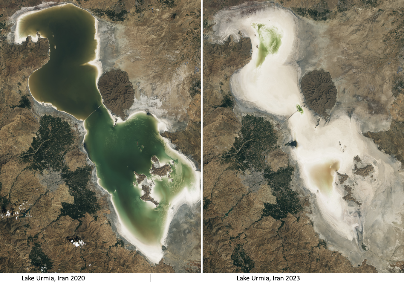 Low rainfall and increased evaporation aren’t the only causes of drought. As farmers and inhabitants of towns in the lower Murray-Darling catchment are well aware, hogging the water upstream can be a major problem. The damage created by upstream dams (sometimes in another country) is well illustrated by the photographs from Iran and Iraq.