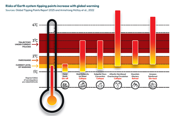 Dying reefs, shrinking icesheets, withering forests and collapsing currents are the latest symptoms of an Earth system enduring dangerous trauma, according to the Global Tipping Points Report 2025.