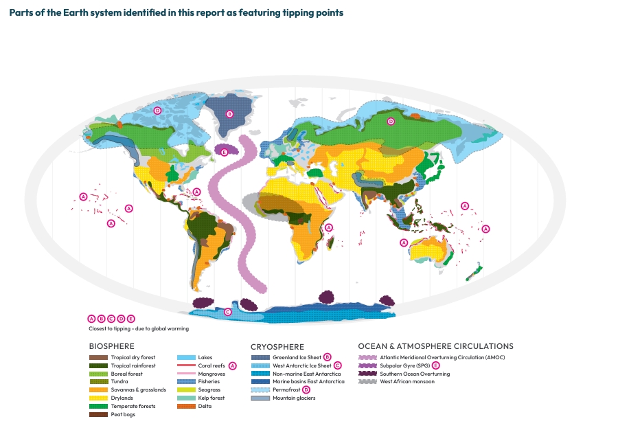 Figure 1. The various tipping points identified by world climate science. Despite their relative remoteness, they still have capacity to harm the daily lives of hundreds of millions of people.