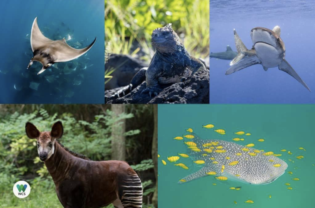Below are five of the species that were given new trade protections at the recent Convention on International Trade in Endangered Species of Wild Fauna and Flora ( CITES) meeting: clockwise from top left, devil ray, marine iguana, oceanic whitetip shark, whale shark and okapi.