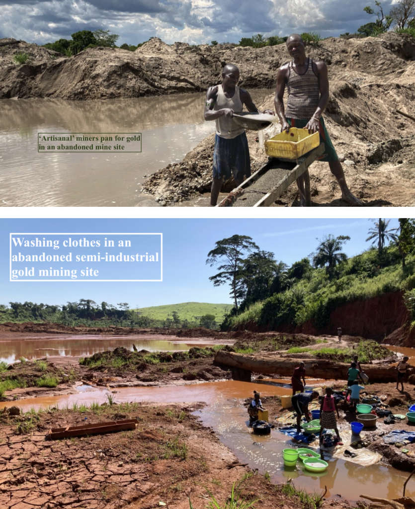 The rogue miners excavate areas 50-400 metres wide along long stretches of riverbed, destroying the river and its banks before moving on and leaving long chains of flooded mining pits, illustrated in the aerial photographs below. The degraded rivers and creeks eventually flow into the River Congo.